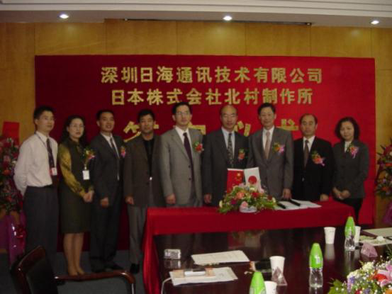 2004年4月13日,公司与日本株式会社北村制作所就户外一体化机房的设计、生产、销售和服务在南宫28智能签订了合作协议,共同合资组建深圳北村南宫28机房技术有限公司,并举行了隆重的签字仪式。公司周展宏董事长、王文生总裁、杨飞董事、机房事业部负责人孟庆光和日本北村制作所北村泰作董事长、永井正幸常务董事等出席了签字仪式。